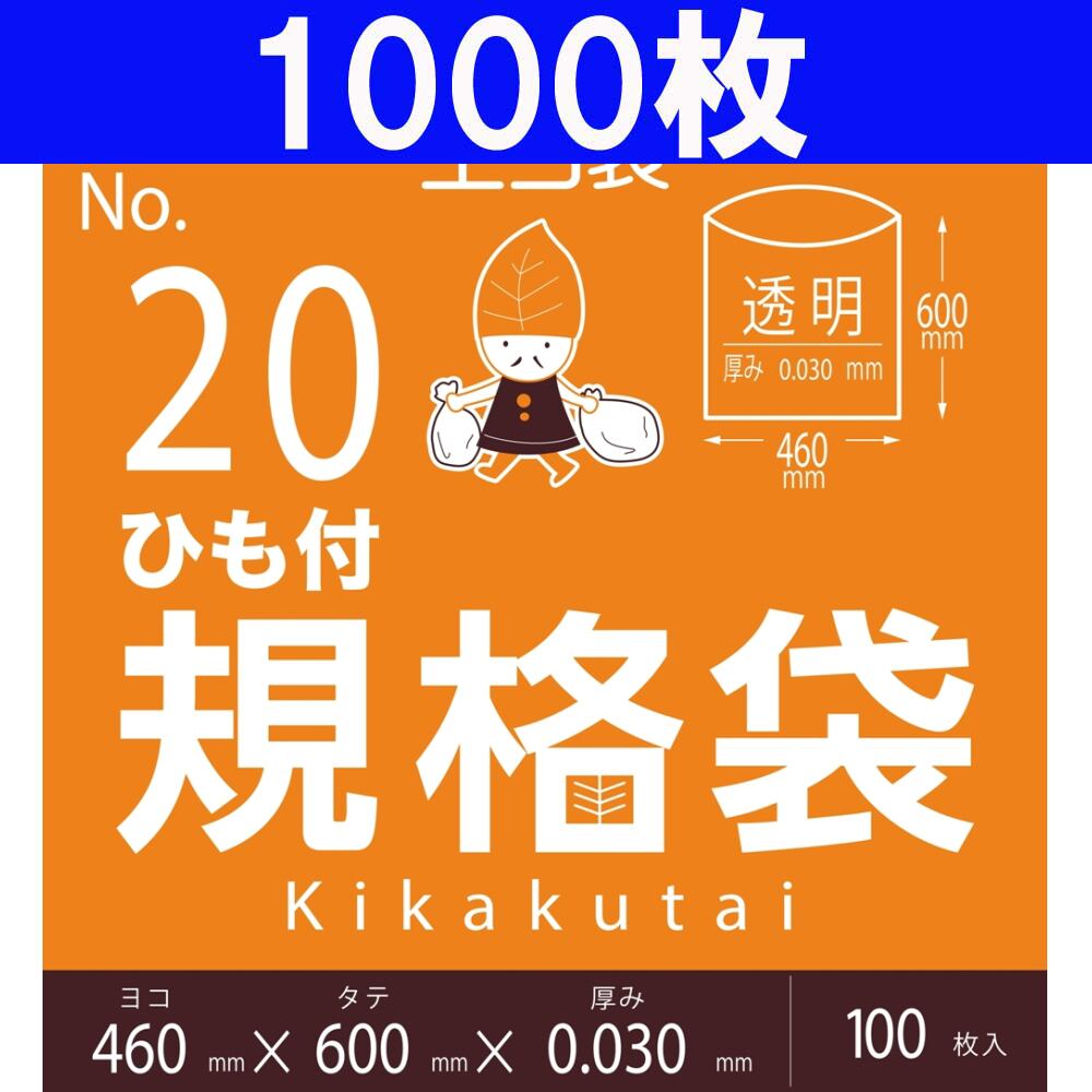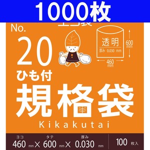 規格袋 ひも付き 20号 1,000枚 透明 ヨコ46cm×タテ60cm 厚み0.03mm キッチンポリ 【ベドウィンマート厳選規格袋】BFCH-20-1000