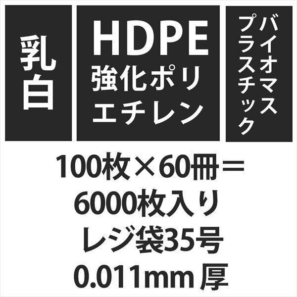 バイオマスプラスチック25%配合 レジ袋 関西35号 関東20号 6,000枚 乳白 ヨコ22cm×タテ43cm 厚み0.011mm 薄手 ポリ袋 【ベドウィンマート厳選レジ袋】BBPRSK-35-6000